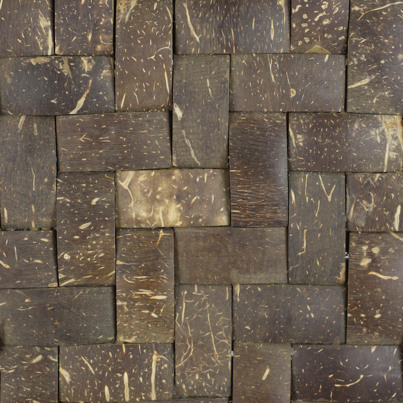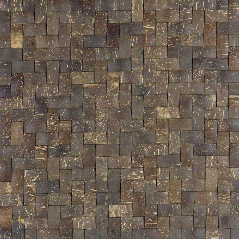 Our Coco Tiles are 100% handmade in Indonesia, these tiles is made from reclaimed coconut shells, low-VOC resins and sustainably harvested wood backer. Easy to install, our Coco Tiles are great for wall covering, furniture and interior design feature elements.
