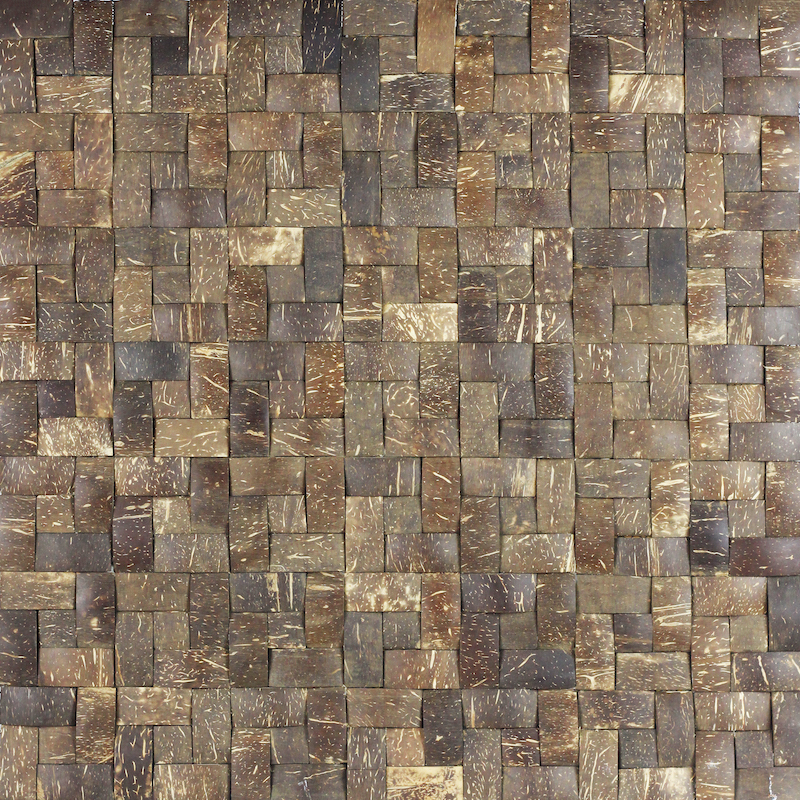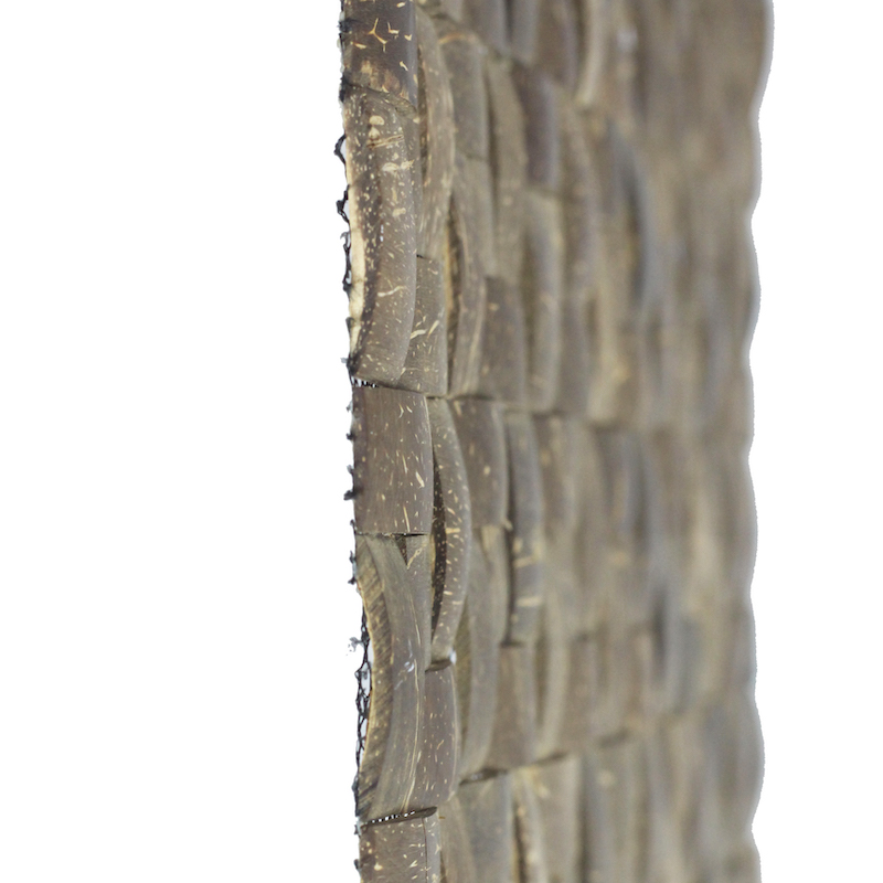 Our Coco Tiles are 100% handmade in Indonesia, these tiles is made from reclaimed coconut shells, low-VOC resins and sustainably harvested wood backer. Easy to install, our Coco Tiles are great for wall covering, furniture and interior design feature elements.
