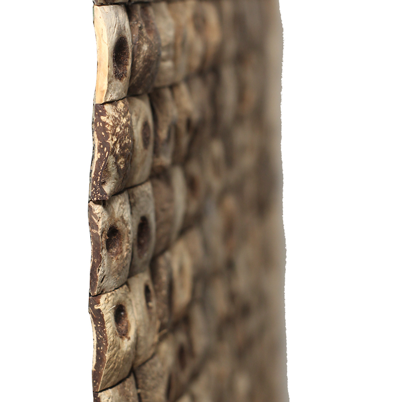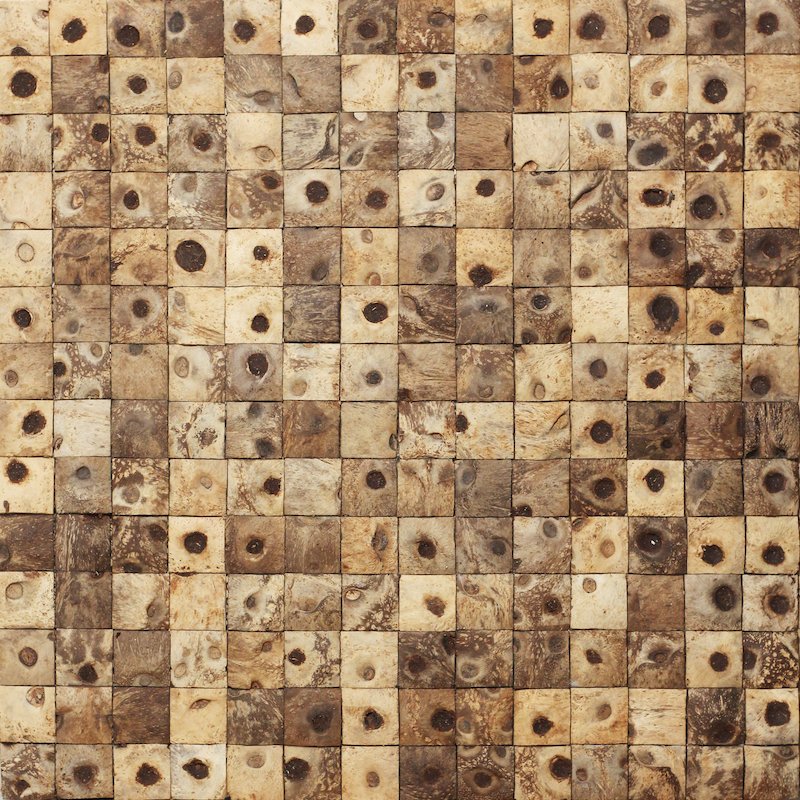 Our Coco Tiles are 100% handmade in Indonesia, these tiles is made from reclaimed coconut shells, low-VOC resins and sustainably harvested wood backer. Easy to install, our Coco Tiles are great for wall covering, furniture and interior design feature elements.