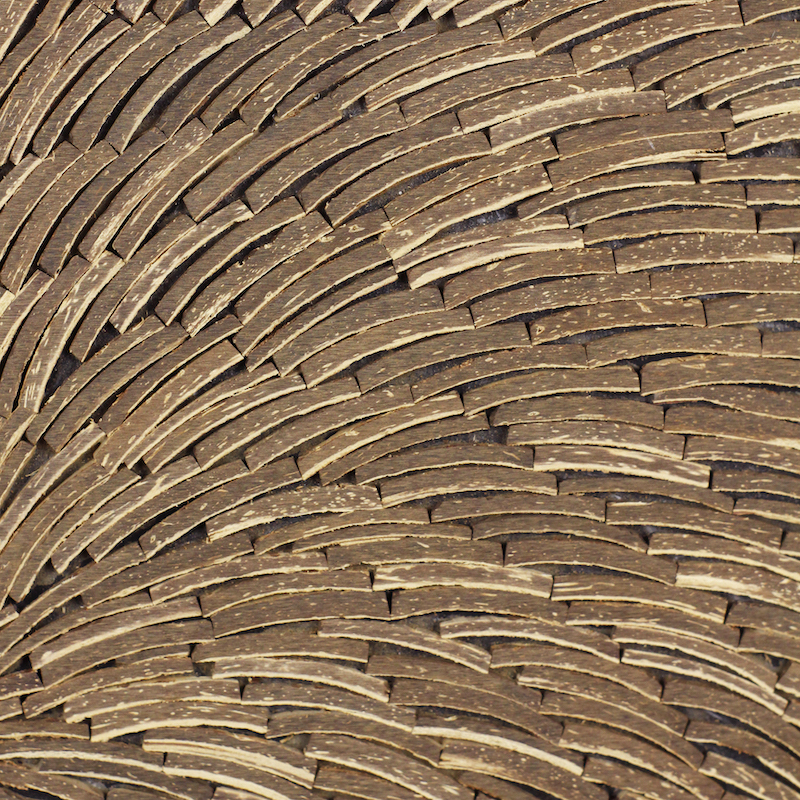 Our Coco Tiles are 100% handmade in Indonesia, these tiles is made from reclaimed coconut shells, low-VOC resins and sustainably harvested wood backer. Easy to install, our Coco Tiles are great for wall covering, furniture and interior design feature elements.